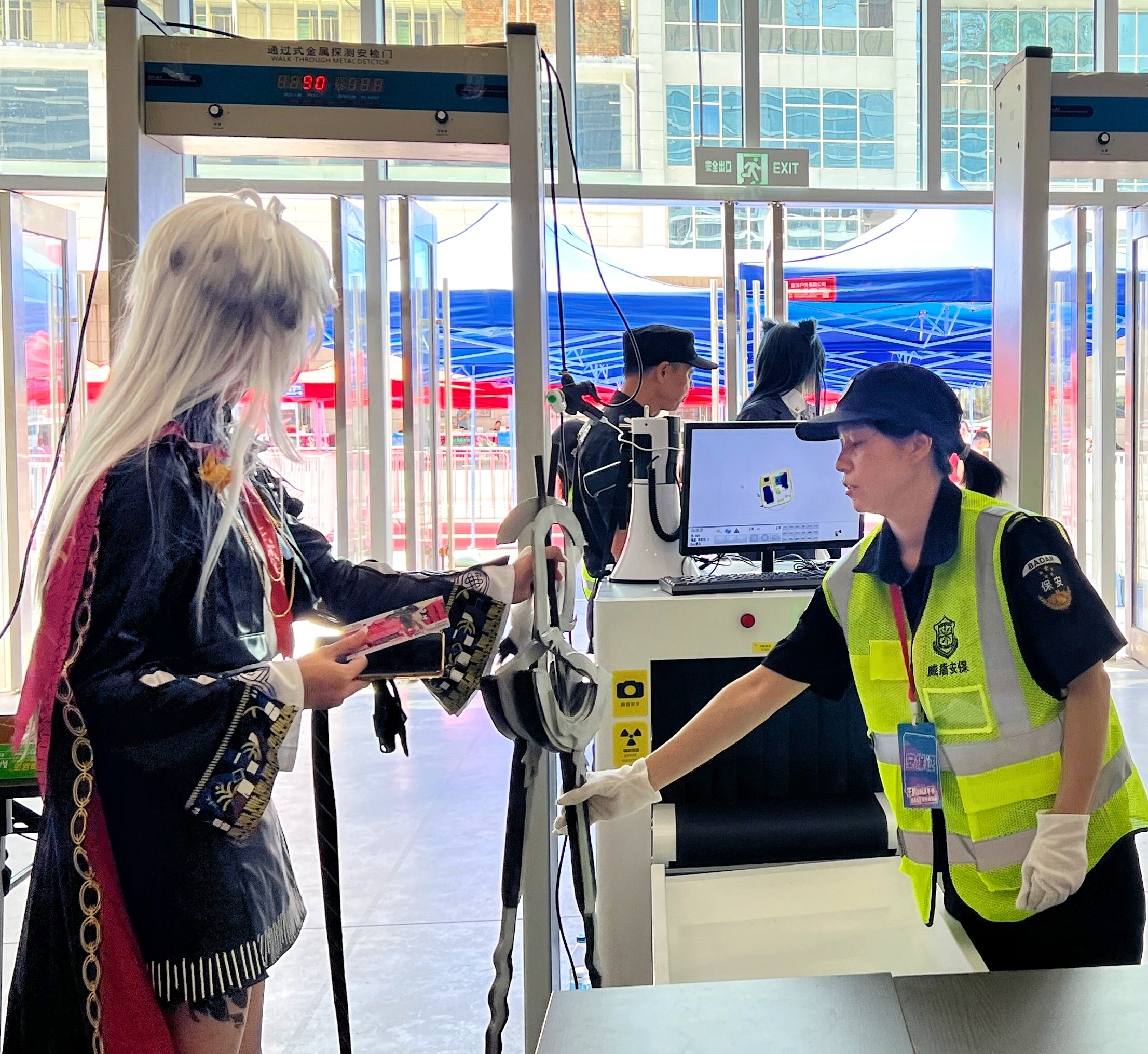 在安保设备方面,配备了专业的安检门和X光安检机。安检门能够快速检测入场人员是否携带违禁金属物品,X光安检机则对观众携带的包包进行细致检查,通过清晰的成像,让安检人员能精准判断包内物品,有效防止危险物品进入会场。